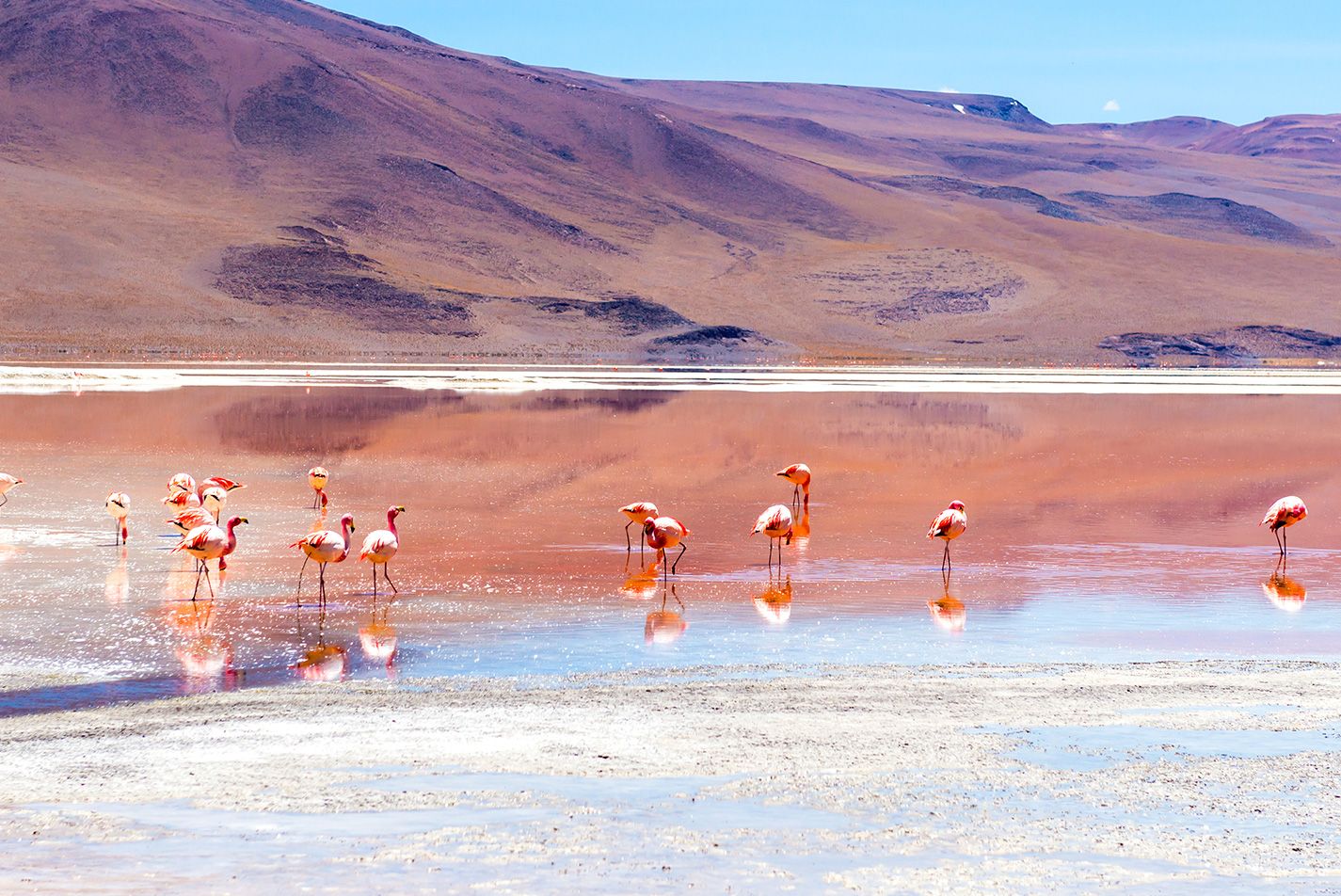 Este día el grupo continua la visita al altiplano boliviano a lugares como: la laguna Verde y laguna Blanca, situados al pie del volcán Licancabur, continuando por el desierto Daly, en donde se admira un verdadero paisaje surrealista, las piscinas de aguas termales, los geysers de Sol de Mañana; fuentes intermitentes de agua que brota a una temperatura de 90° C y fumarolas, grietas por donde sale lava volcánica, laguna Colorada, centro principal de anidación de más de 30000 flamenco de 3 especies. Estos lugares están en un promedio de altitud de 4.500 m.s.n.m., con posibilidad de contemplar la flora y fauna de la zona , flamencos, vicuñas y otros animales, retornando a San Pedro Atacama a las 18:00 hrs.
